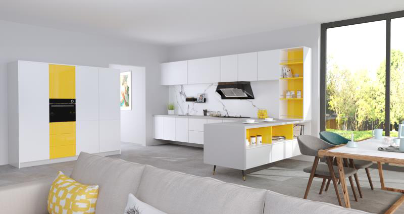 ●門板材質(zhì):檸檬黃 高光噴涂不銹鋼面板 / 水晶白 高光噴涂不銹鋼面板
