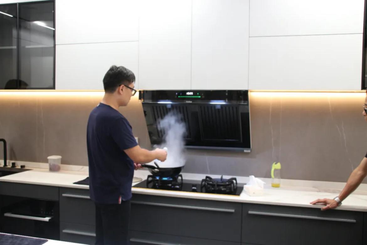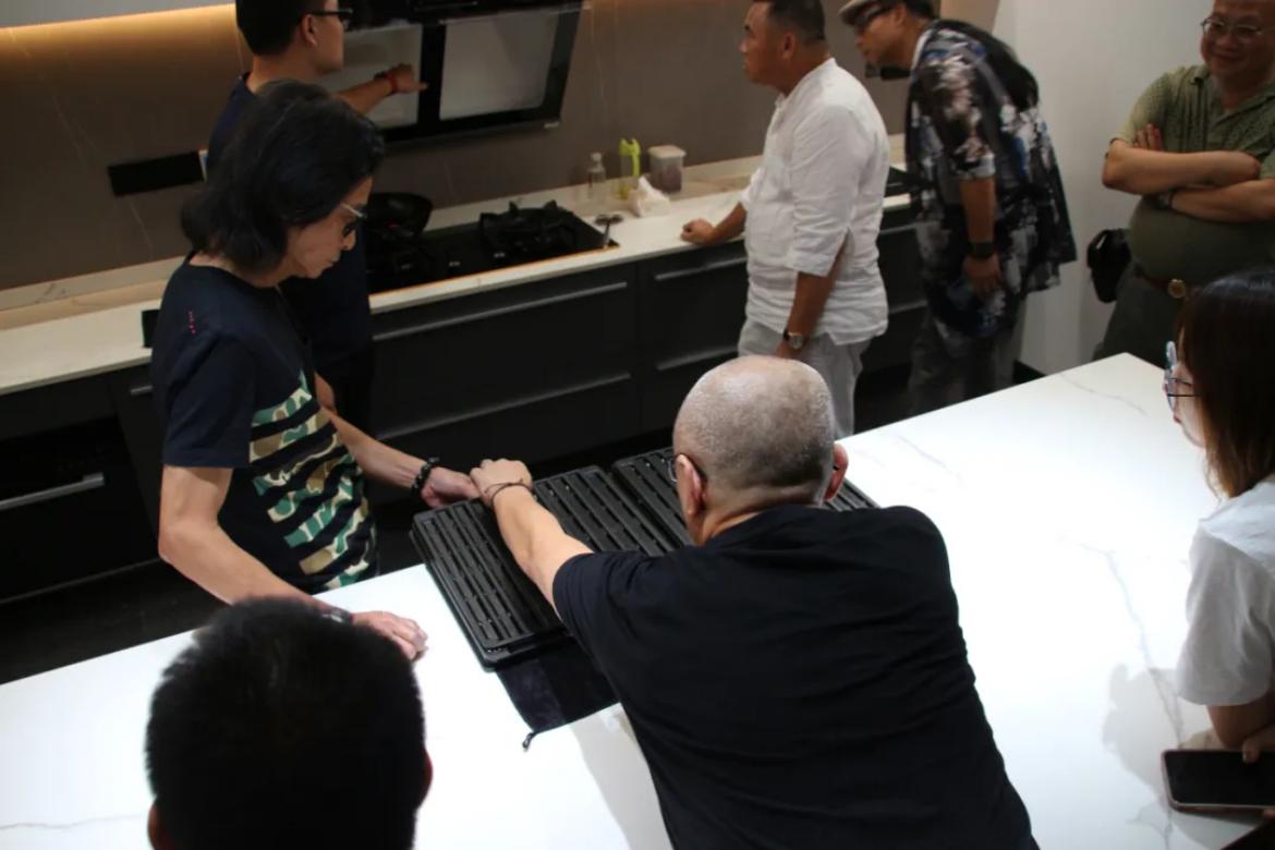 展廳內各類開放式廚房空間設計,不同的廚柜、廚電和設計細節展現著庫靈圖靈動的設計理念和精湛的產品工藝。這讓設計師們對開放式廚房的系統解決方案產生了濃厚的興趣,大家都忍不住摸摸廚柜的工藝質感并紛紛駐足討論這類設計的應用方向和前景。