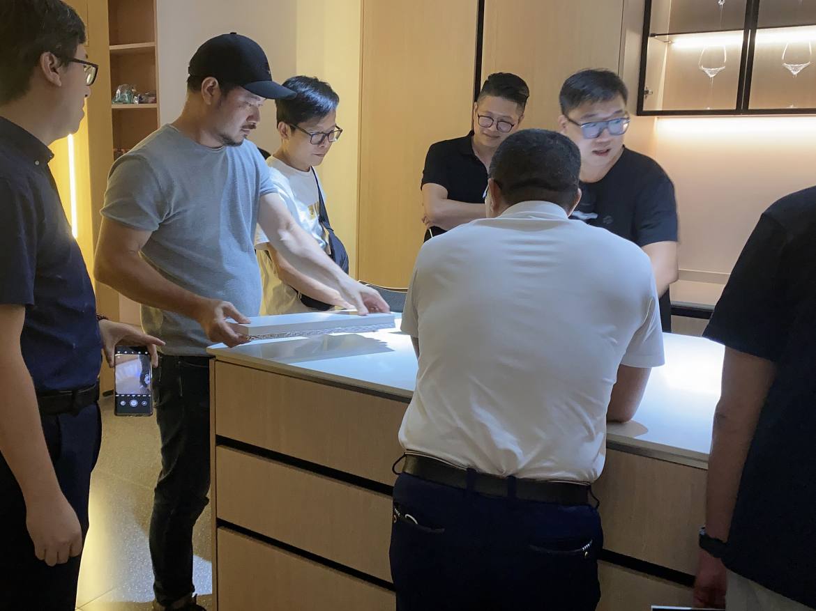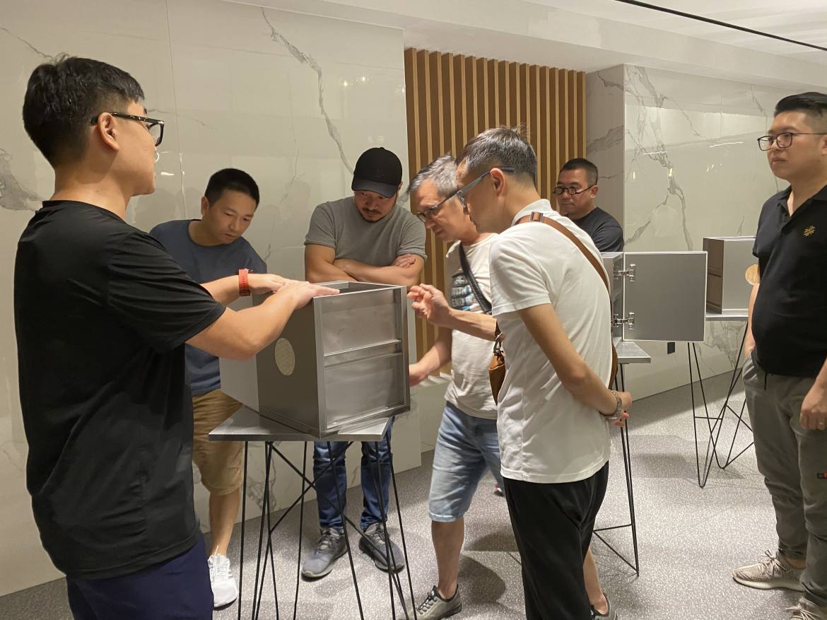 在接下來的活動中,設計師朋友們跟隨著庫靈圖展廳參觀的動線,逐步了解了各類不銹鋼廚柜、陽臺柜等產品和工藝細節。R角一體壓模成型、蜂窩鋁+環保發泡復合填充等專屬于庫靈圖的獨家工藝技術,以及各類人性化設計細節和時尚外觀,讓設計師們倍感興趣,好評不斷。