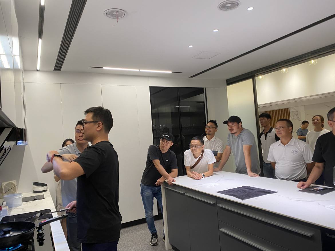 一說到開放式廚房,大家都非常向往。一方面想嘗試打通餐廚空間之后的廣闊世界,另一方面又擔心油煙問題。此次活動現場,庫靈圖家裝事業部總監為大家在開放式廚房做了爆炒辣椒的演示體驗,庫靈圖前置油煙分離油煙機和廚房新風系統,展現出了高效的油煙吸凈效果,這為解決開放式廚房的油煙問題提供了有效方案,令大家贊嘆不已。